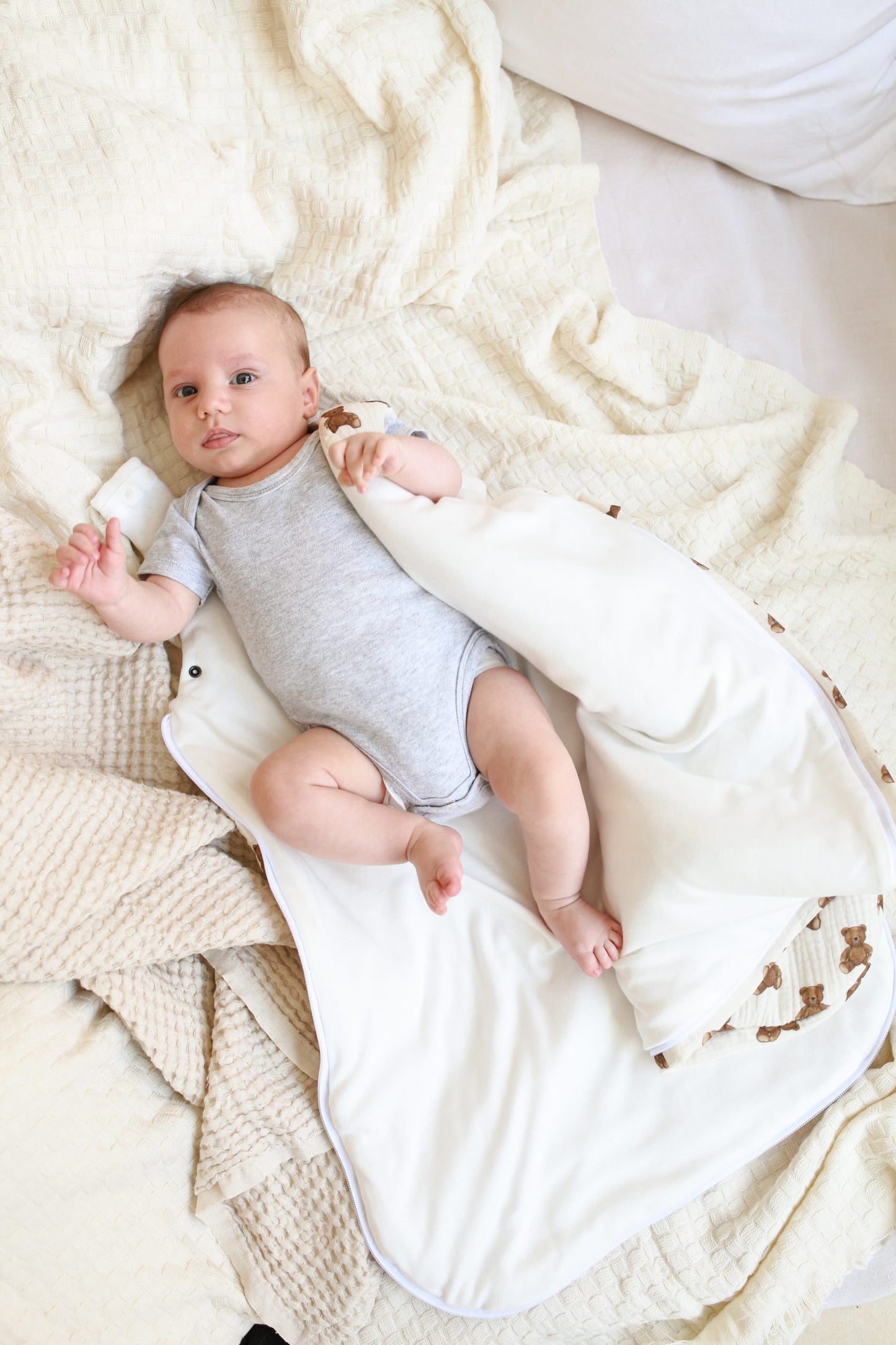 - Zippered opening that makes diaper changing easier while maintaining the baby's thermal comfort.