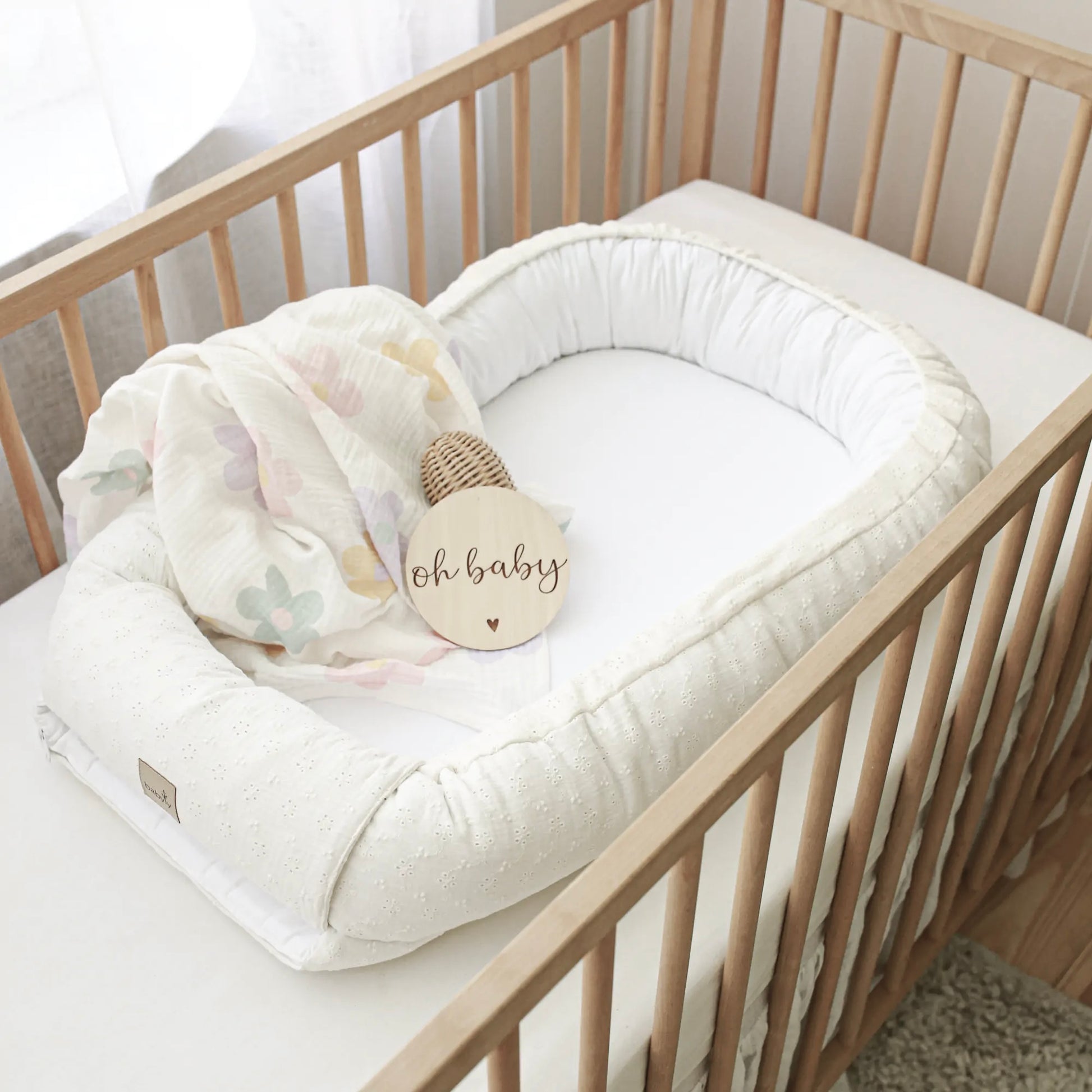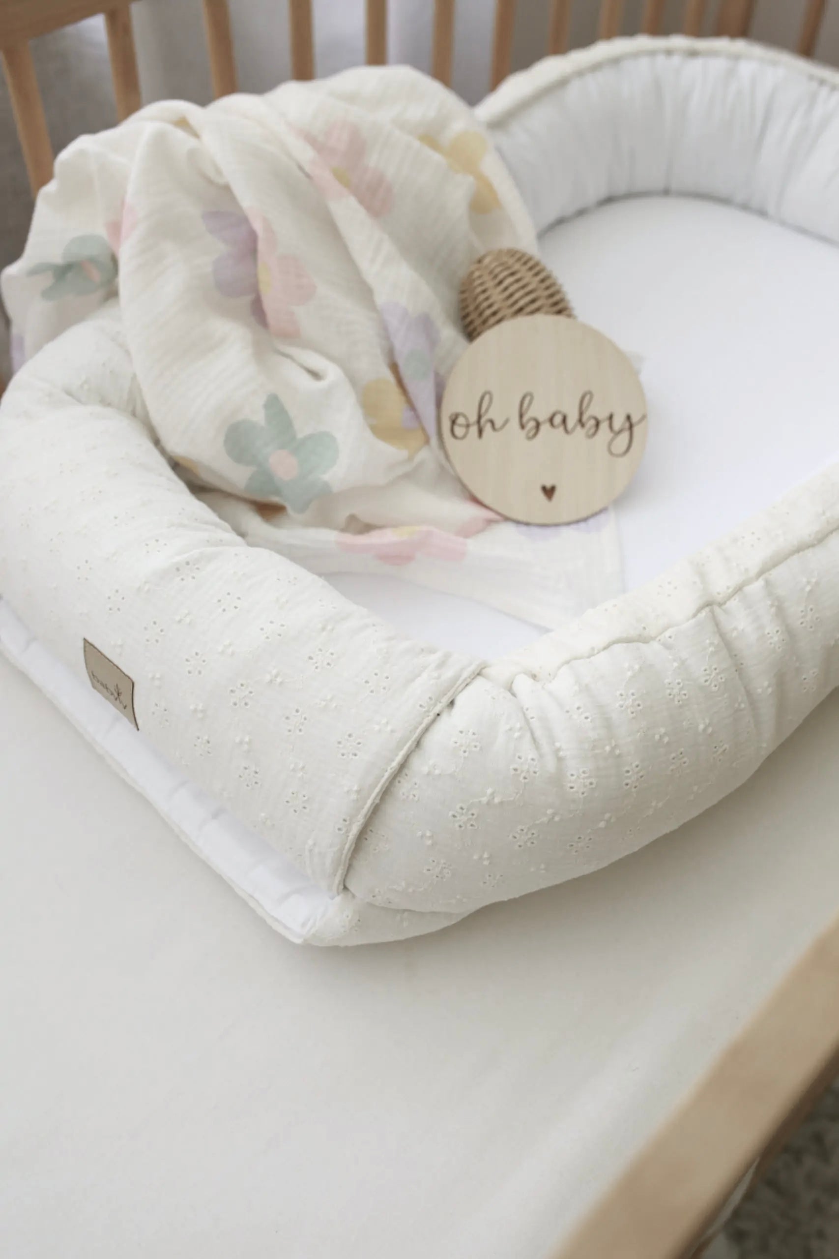 Ninho de Bebé Ajustável com Interior em Algodão e Contorno Bordado Cru